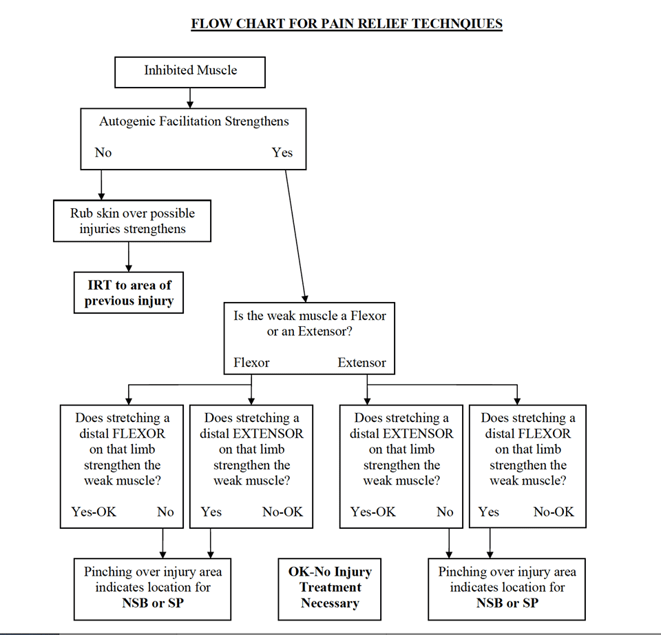 1.) Check inhibited muscle for Autogenic Facilitation (muscle spindle cell to strengthen.) If no facilitation occurs, then the patient needs IRT.